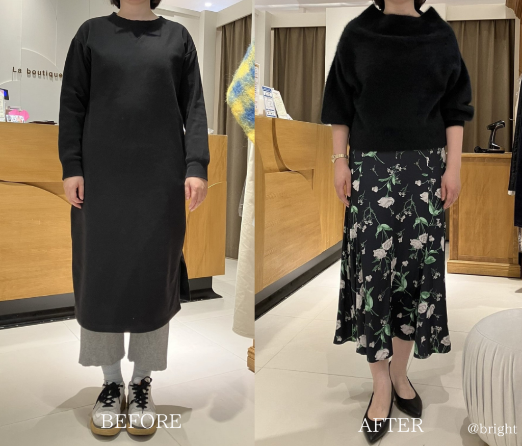 Beforeに比べると、お客様のスラっとした体型が自然に引き立ち、